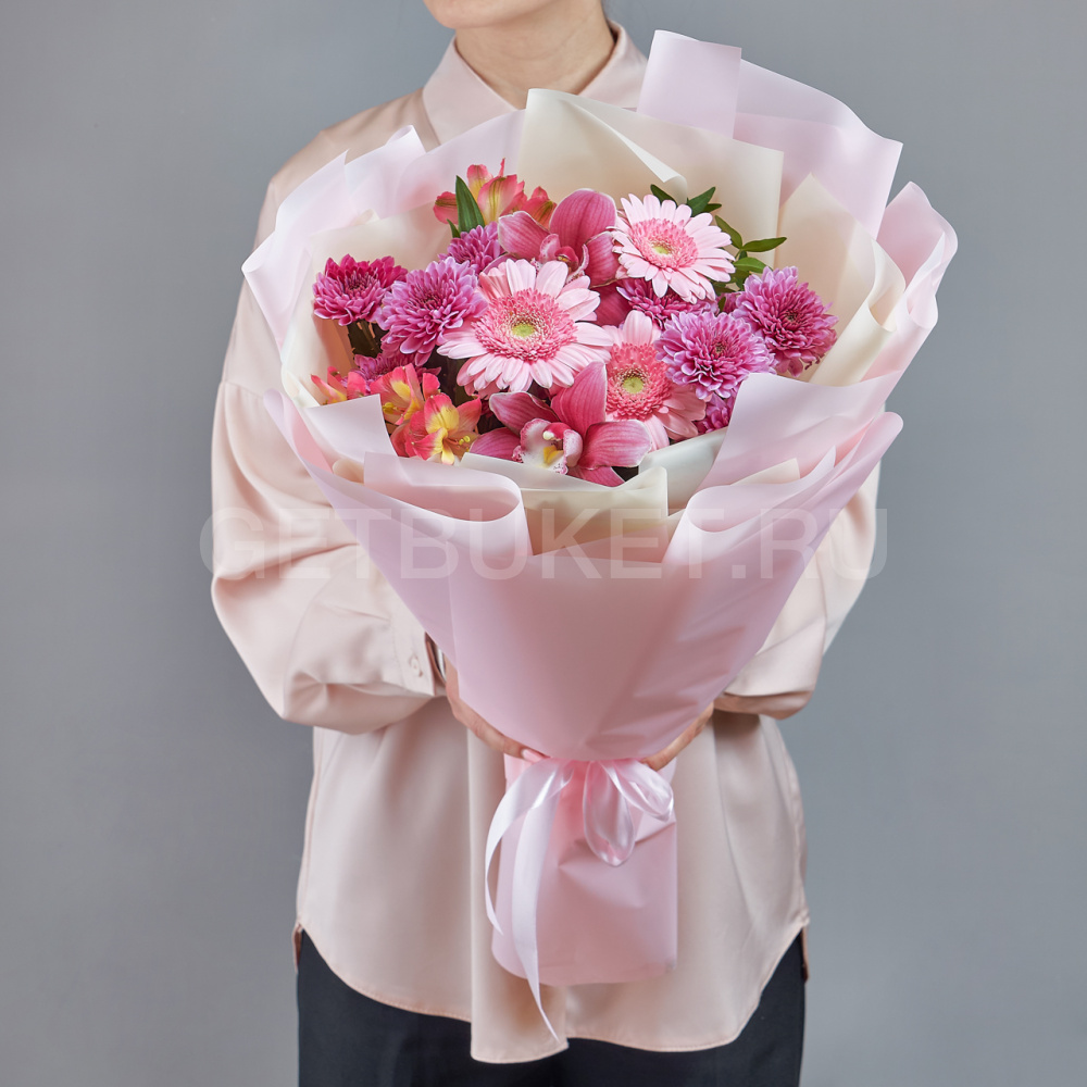 Букет из гербер с орхидеей и альстромерией