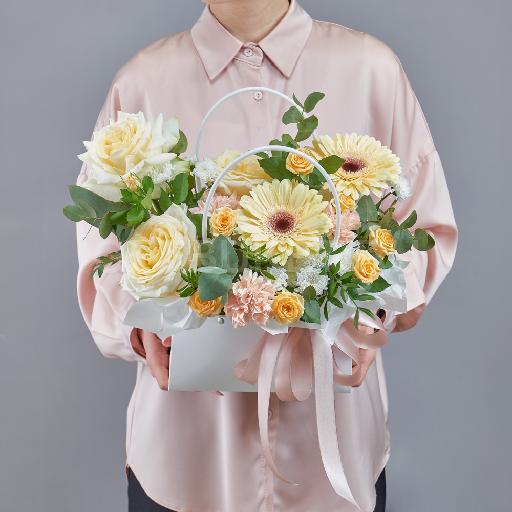 Возможны минимальные отличия букета от фотографии и допустимы отличия по цветовой гамме, так как цветы являются природным материалом и собираются вручную